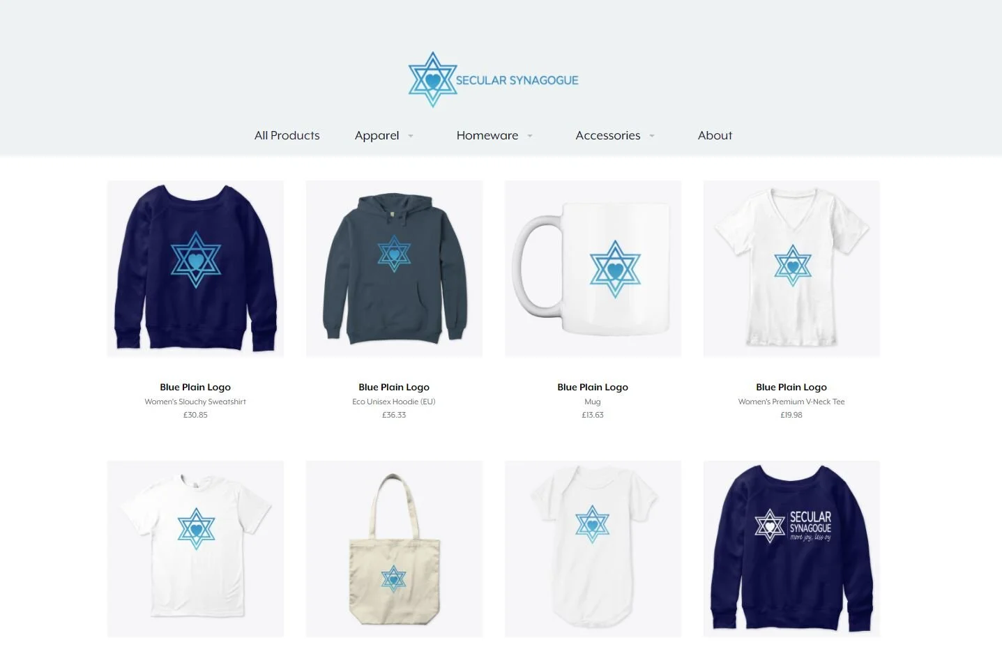 Head over to the Secular Synagogue Teespring Store for T-Shirts, Hoodies, Bags, Mugs and more.